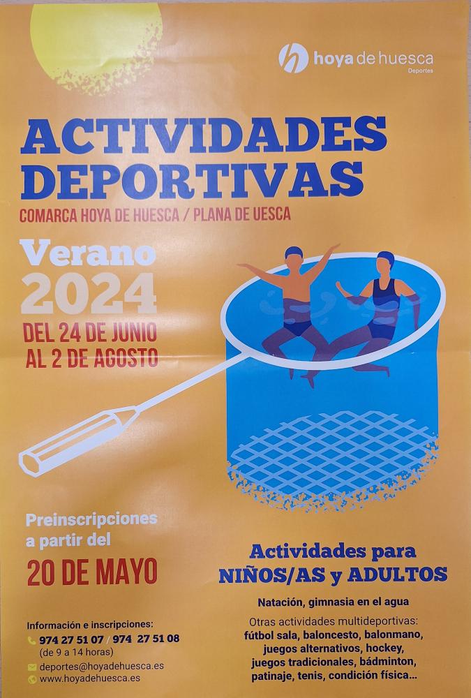 Este año se vuelven a ofertar por la Comarca de la Hoya de Huesca actividades deportivas para el periodo de verano. Las actividades se realizarán desde el 24 de junio hasta el 2 de agosto (6 semanas).