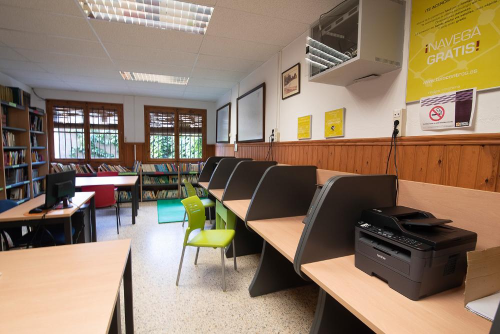 Espacio cultural equipado con equipos informáticos y conexión a internet.